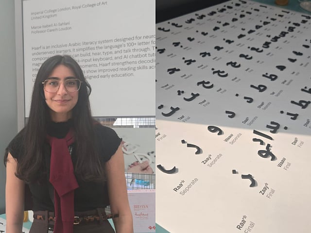 Haarf is a modular Arabic literacy system designed for children who struggle with traditional reading methods, including neurodivergent and bilingual learners. It simplifies the script into magnetic building blocks, paired with audio guidance and an AI tutor that offers real-time feedback.