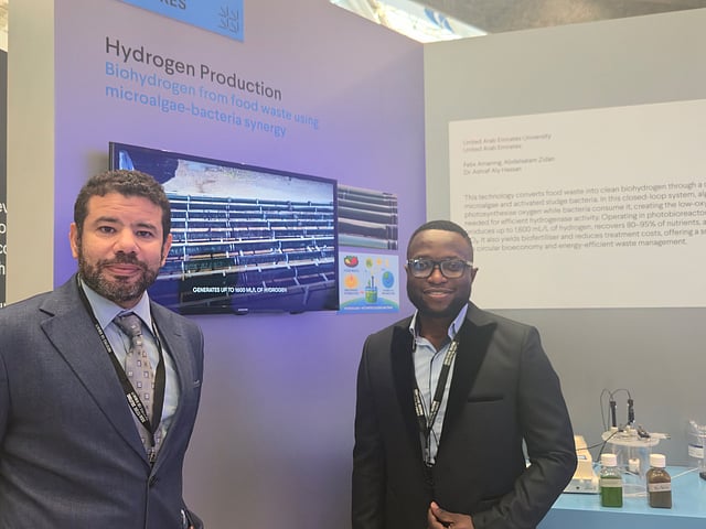 “Every year, the UAE produces around three-and-a-half billion tonnes of food waste,” says advisor Dr Ashraf Aly Hassan. “Our system transforms that waste into hydrogen, which can power fuel cells and generate electricity.”